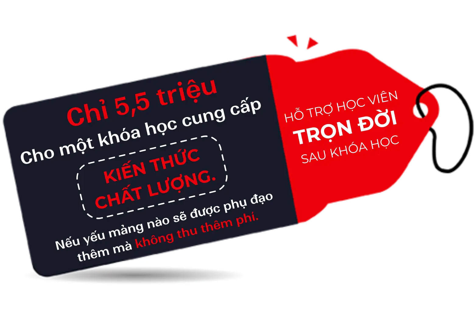 Học viên được học toàn bộ 5 lớp chính + 24 khóa bổ trợ + hỗ trợ 1-1 trọn đời